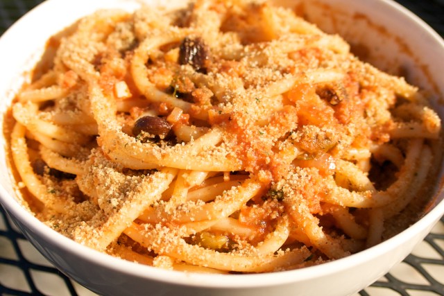 Buccatini is the long hollow spaghetti, right? Looks yummy.