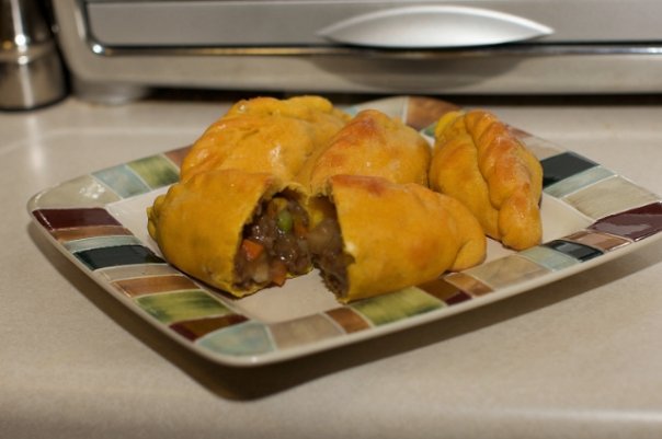 A salteña is a type of baked empanada of Bolivian origin sold throughout Bolivia, although they are also available in other countries such as Argentina, Brazil, Peru and Chile. Salteñas are savory pastries filled with beef, pork or chicken mixed in a sweet, slightly spicy or very spicy sauce, and sometimes also containing peas, potatoes and other ingredients. I love these tasty little things. Salteñas are great party appetizers but I’ve got to say, they are a lot of work.