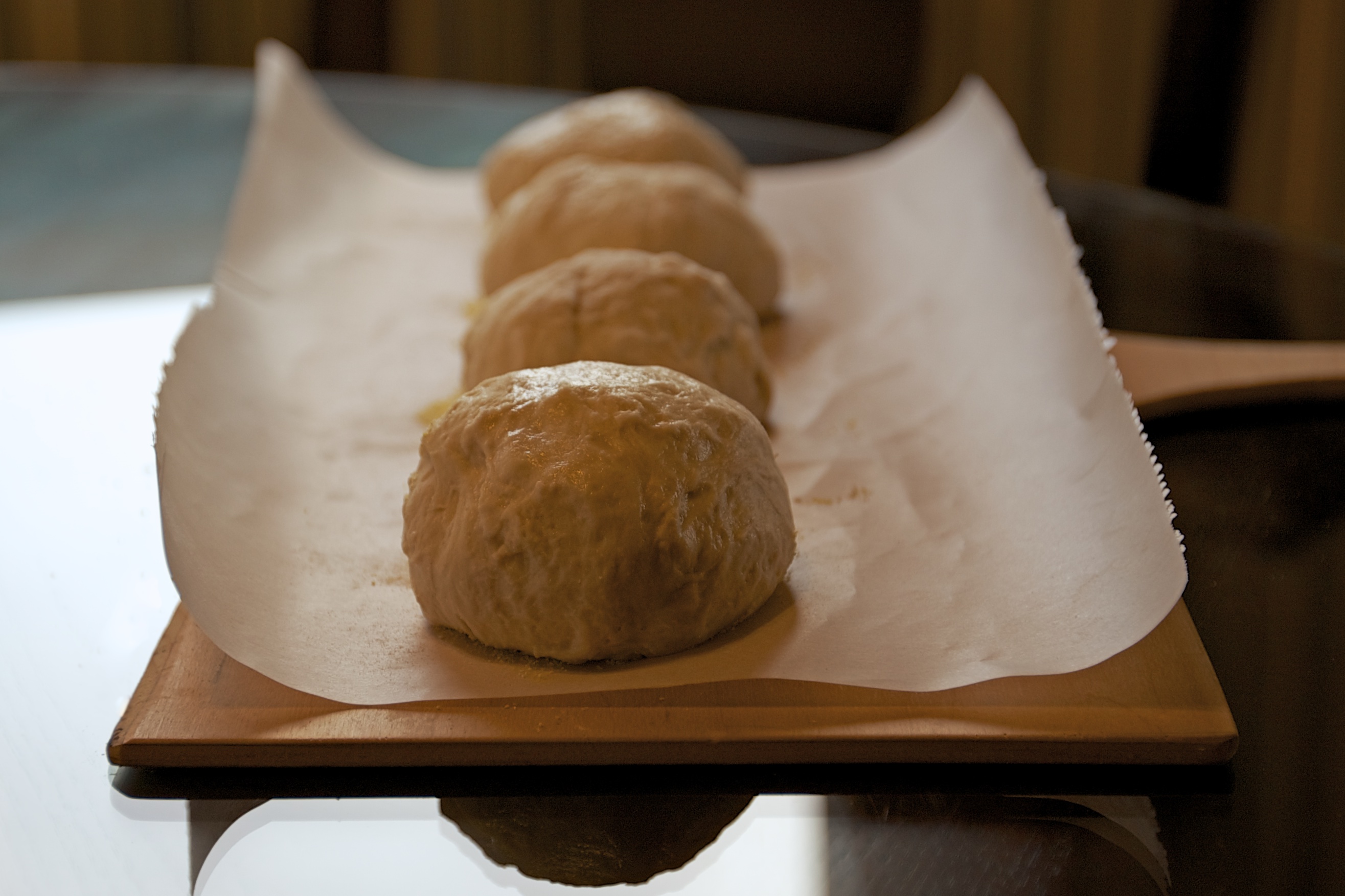 4. Hariette, I made these about 2-1/2 inches across the top (dinner roll size.) When I put them into the oven they really had some spring to them. I slit them across the top before putting them into the oven and you can see from the picture how much the opened up.