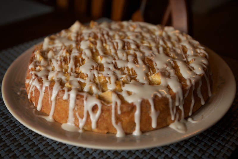 Bake for 50 minutes, or until the top of the cake springs back when lightly pressed and the apples are tender. It will be golden brown.